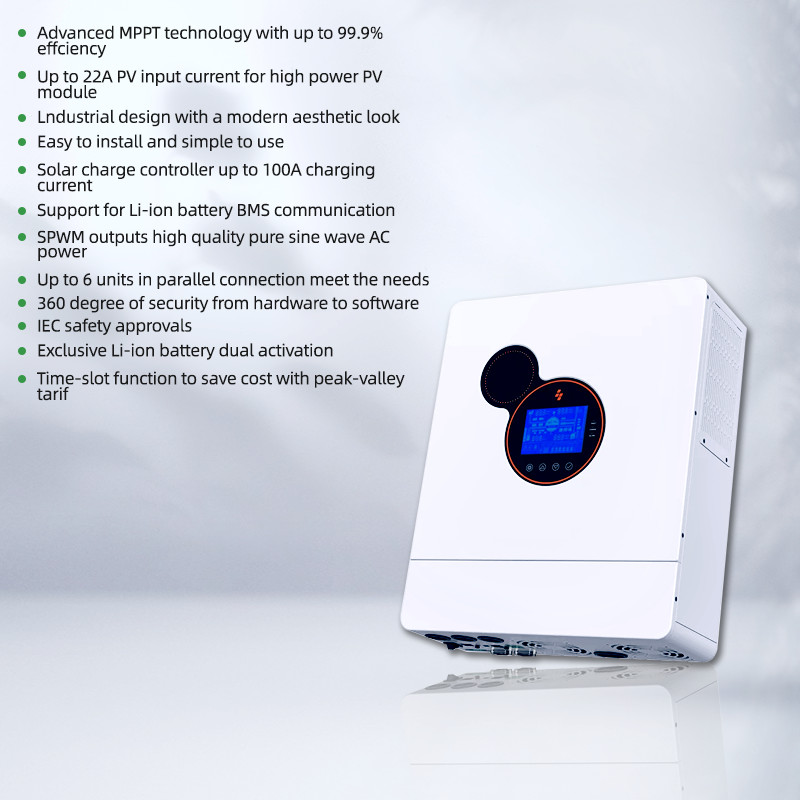 Características de la seguridad y de protección: La seguridad es un principal prioridad con el inversor fuera de la red de HYP4850U100-H. Incluye características de protección completas tales como protección contra sobrecarga, protección de sobrecalentamiento, y protección del cortocircuito. Estas salvaguardias aseguran la longevidad del inversor y la seguridad de dispositivos conectados.